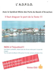 - Coopérer en s’investissant dans le projet de dragage du port de La Teste de Buch et de son accès