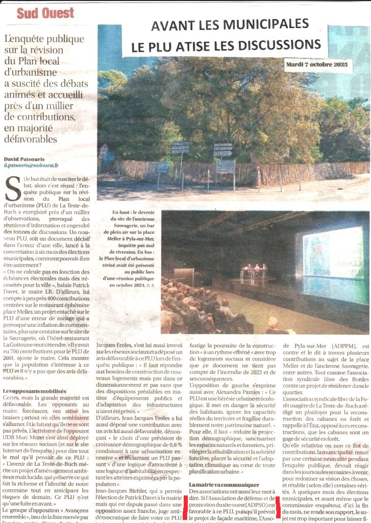 Bien sur l’ADPSO est favorable au PLU proposé pour toutes ses raisons.